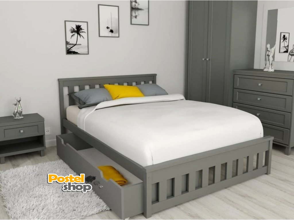Postel z borovicového masivu včetně roštu - latí . provedení -bezbarvý lak, bílá, šedá barva .