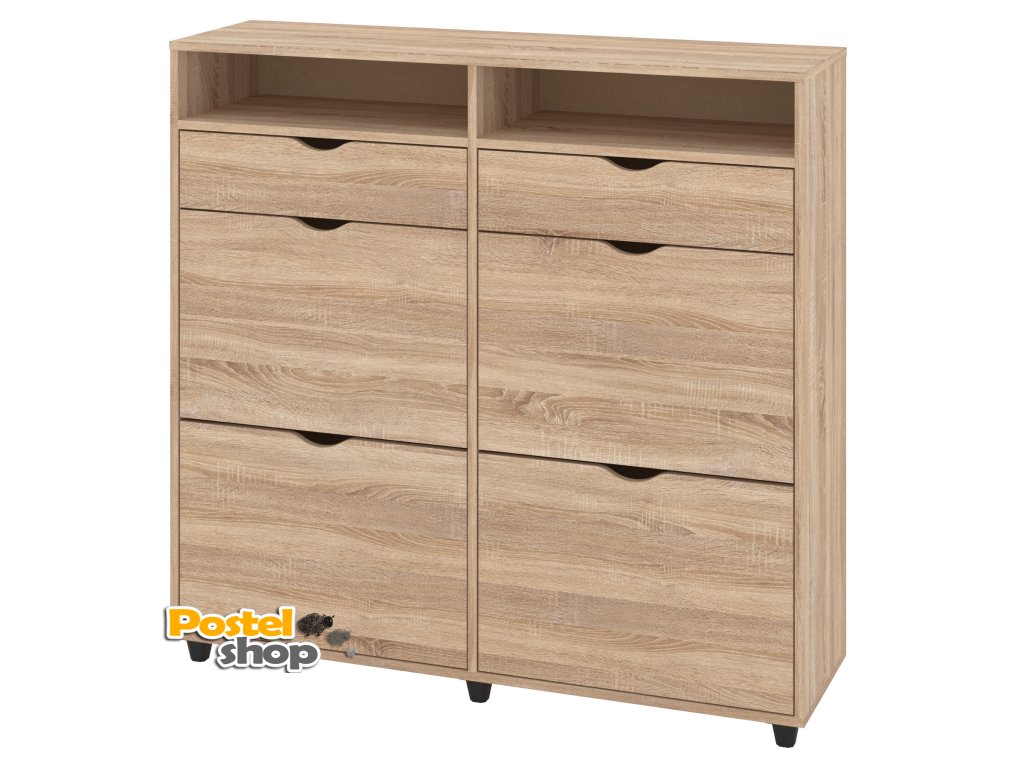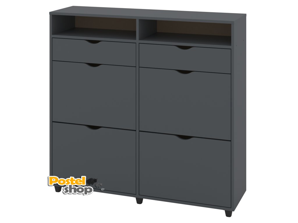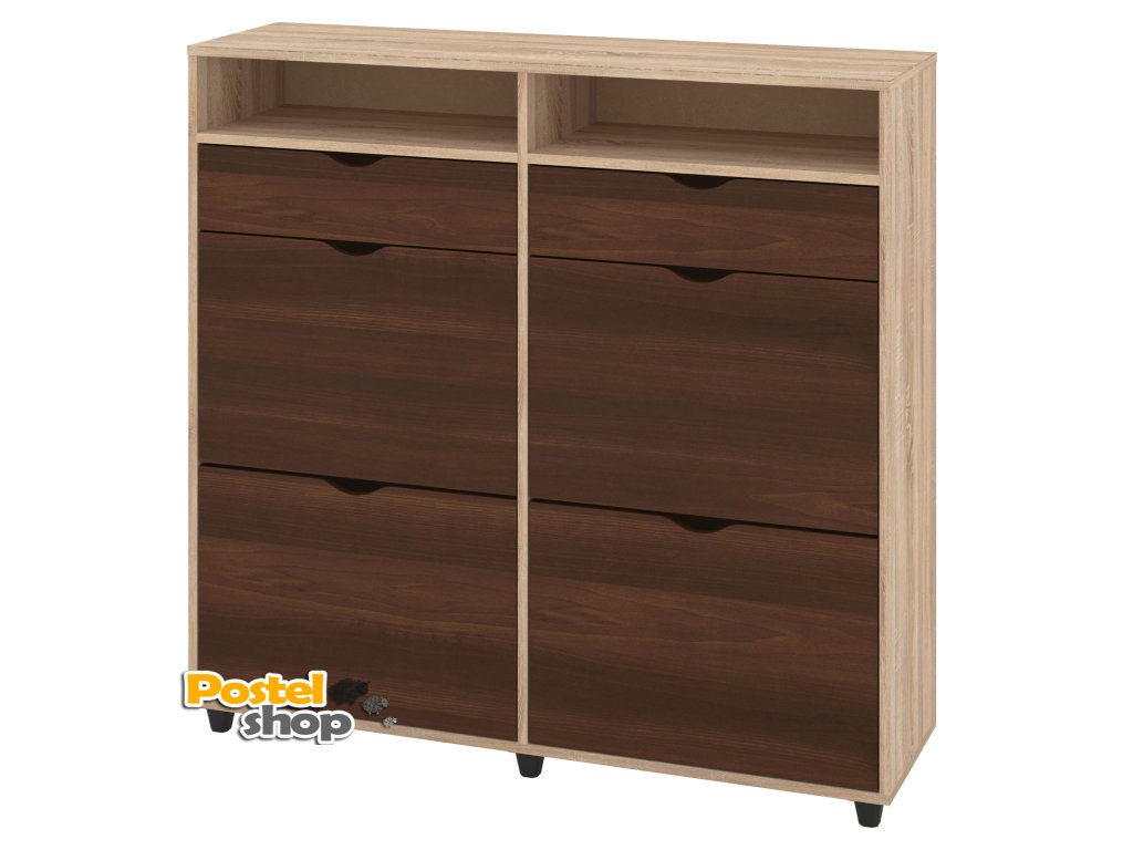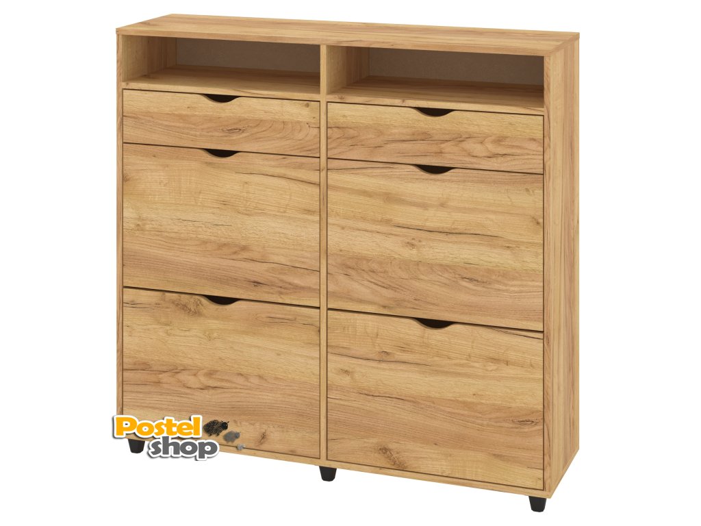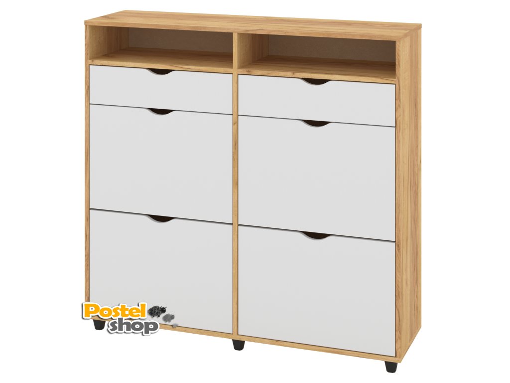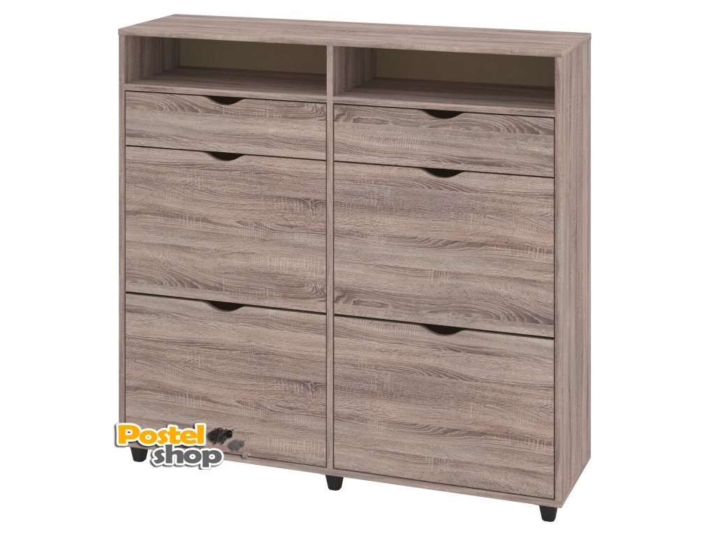 Výklopný botník T-06 je ideálním řešením pro všechny, kdo hledají praktický a elegantní úložný prostor pro obuv. Tento čtyřřadý botník se zásuvkami a nikou vám poskytne dostatek místa na všechny vaše boty, a zároveň díky modernímu designu skvěle zapadne do každého interiéru. S výškou 114,5 cm, šířkou 118,6 cm a hloubkou 34 cm nabízí dostatečný prostor pro organizaci vaší obuvi a dalších drobností.