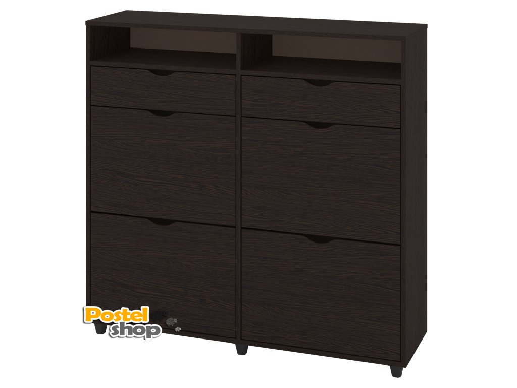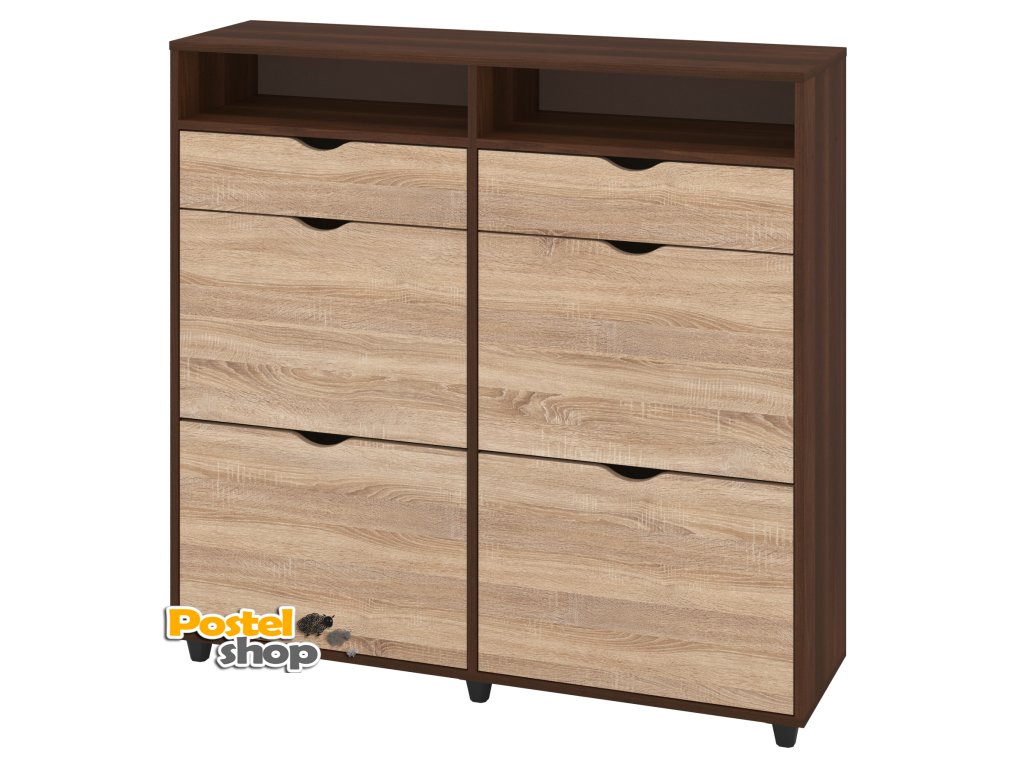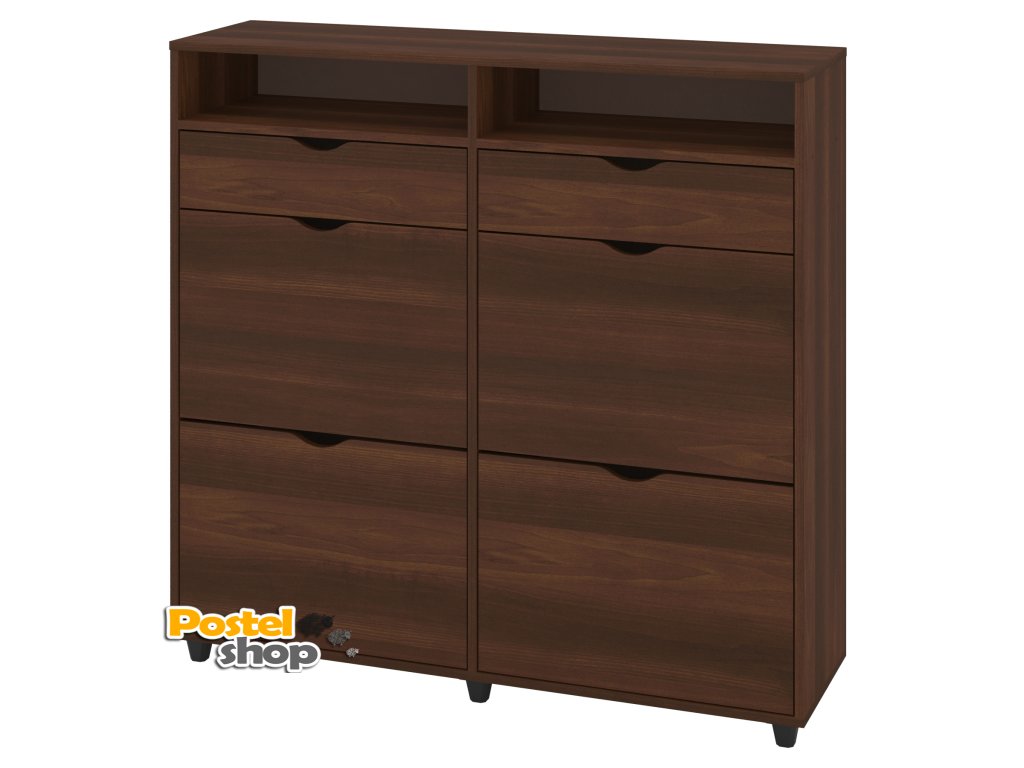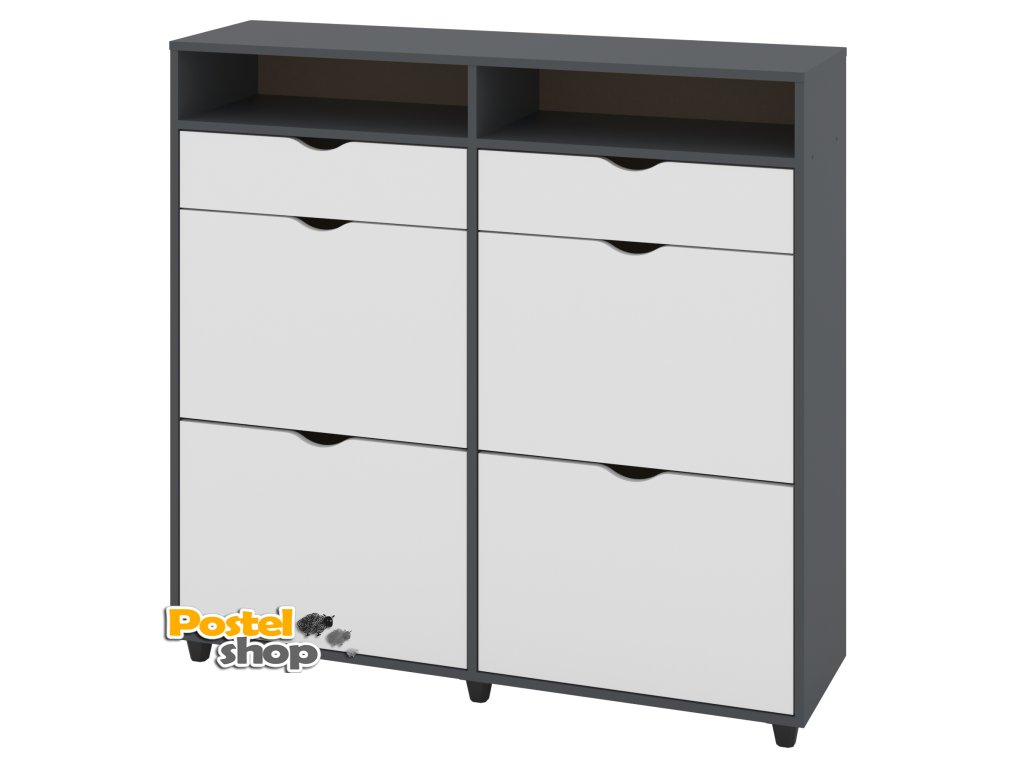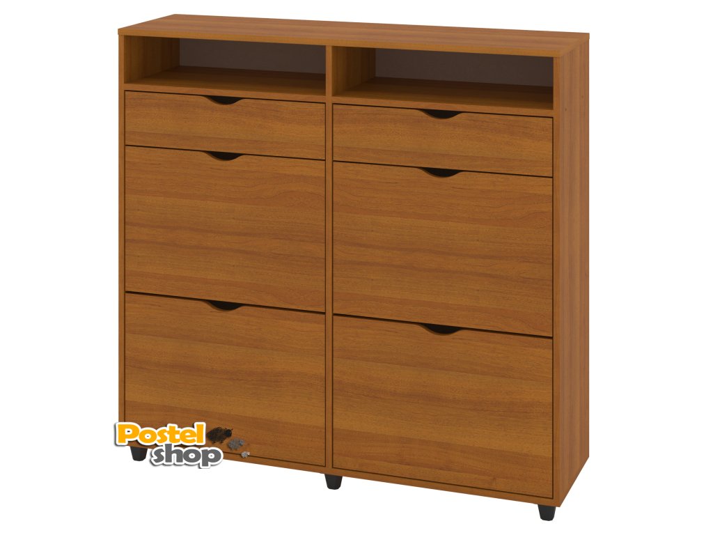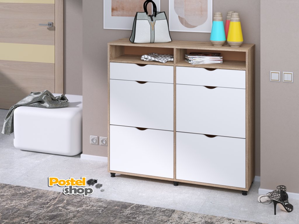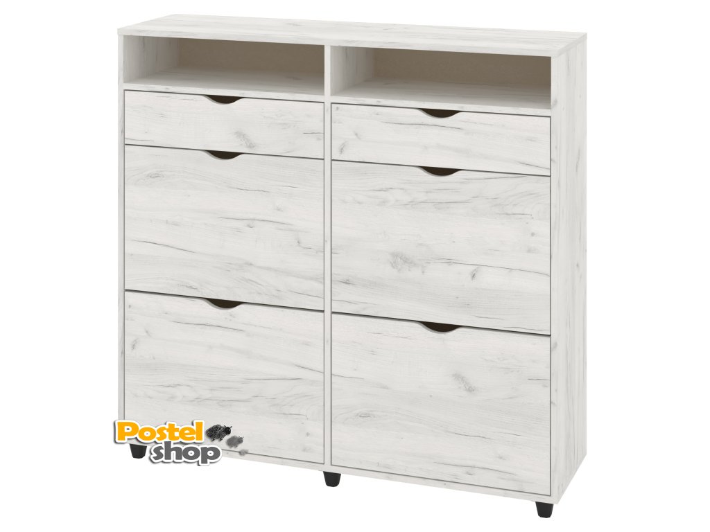 Výklopný botník T-06 je ideálním řešením pro všechny, kdo hledají praktický a elegantní úložný prostor pro obuv. Tento čtyřřadý botník se zásuvkami a nikou vám poskytne dostatek místa na všechny vaše boty, a zároveň díky modernímu designu skvěle zapadne do každého interiéru. S výškou 114,5 cm, šířkou 118,6 cm a hloubkou 34 cm nabízí dostatečný prostor pro organizaci vaší obuvi a dalších drobností.
