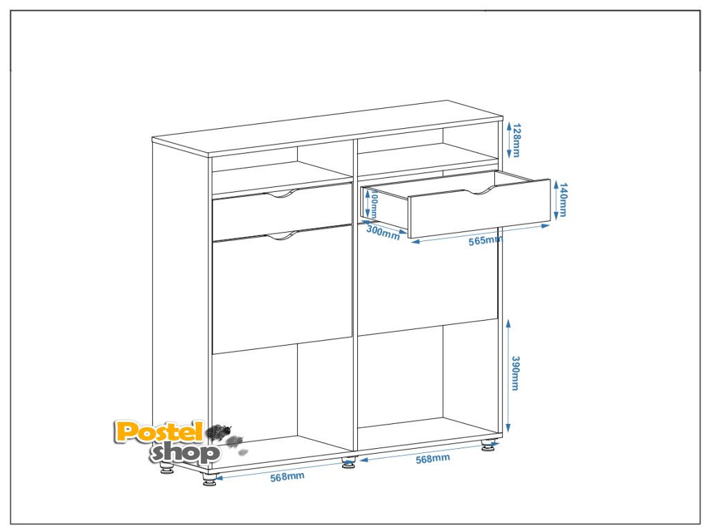 - Zásuvky pro drobnosti – ideální pro ukládání klíčů, rukavic, ponožek nebo jiných drobných předmětů.