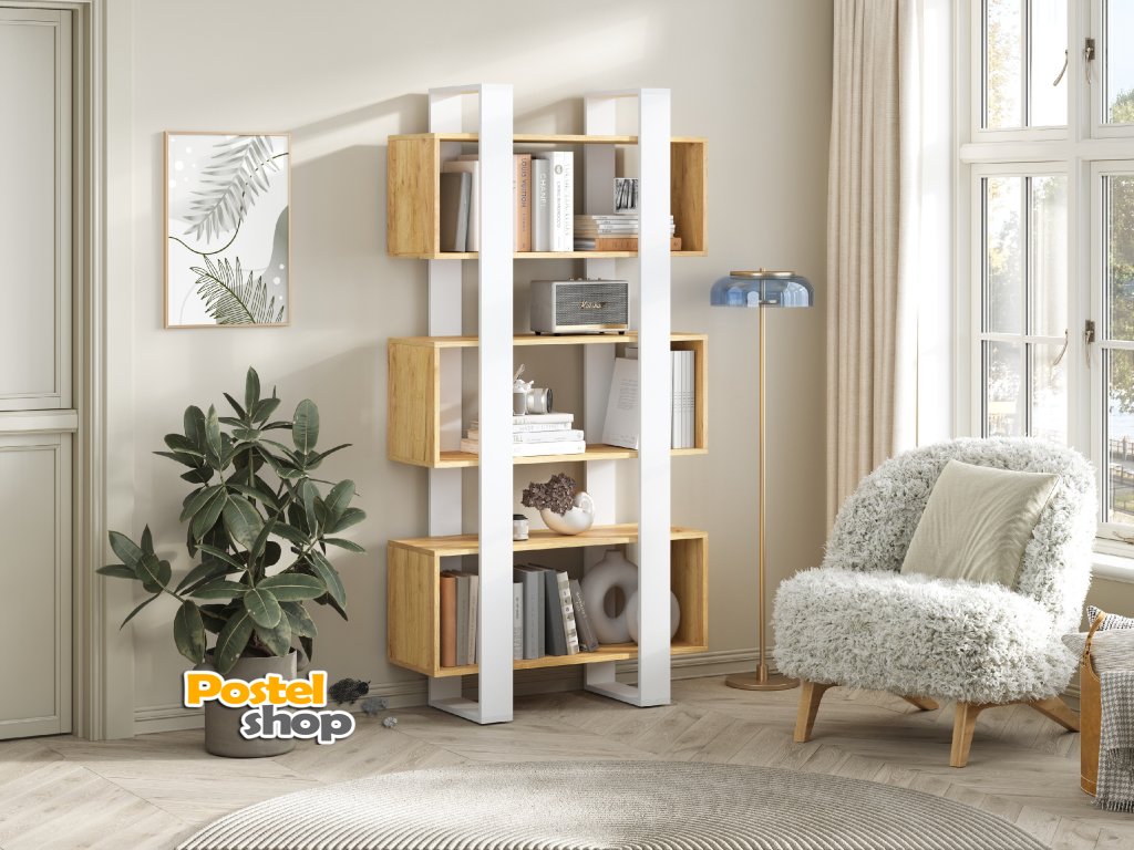 Vysoký moderní policový regál POL-18 – Stylové řešení pro váš interiér