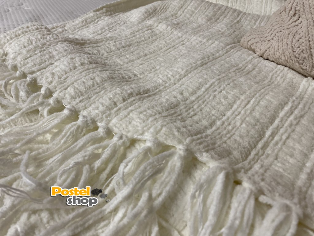 Deka s třásněmi je vyrobena ze 100% polyesteru, na omak je velmi přijemná, hřejivá a lehká.