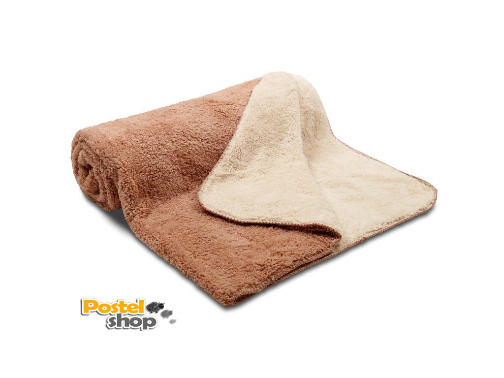 Deka je dvouvrstvá, jedna strana je z hebké imitace ovčí vlny, druhá je z jemného mikroflanelu s kudrnatým vlasem.