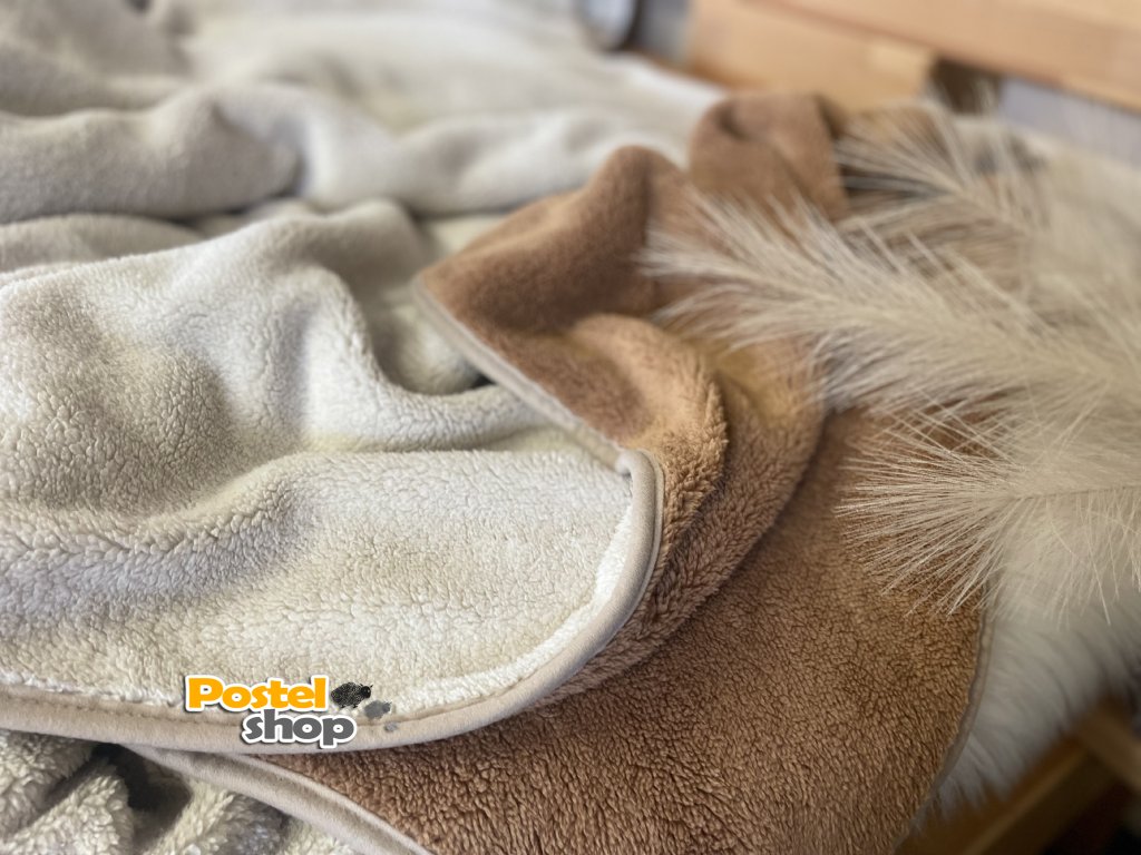 Deka je z jedné strany z mikrovlákna s hladkou úpravu a z druhé strany je imitace ovčí vlny. Je příjemná na dotek a velmi hřejivá. gramáž 500g/m