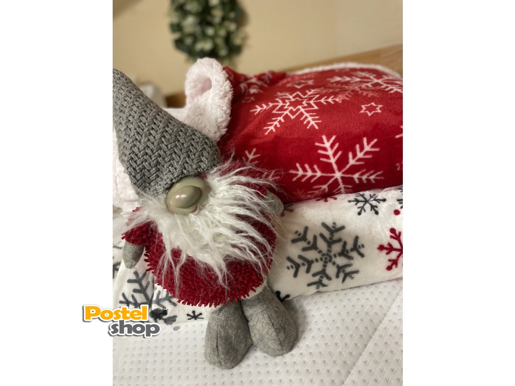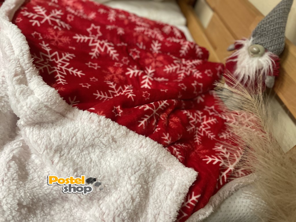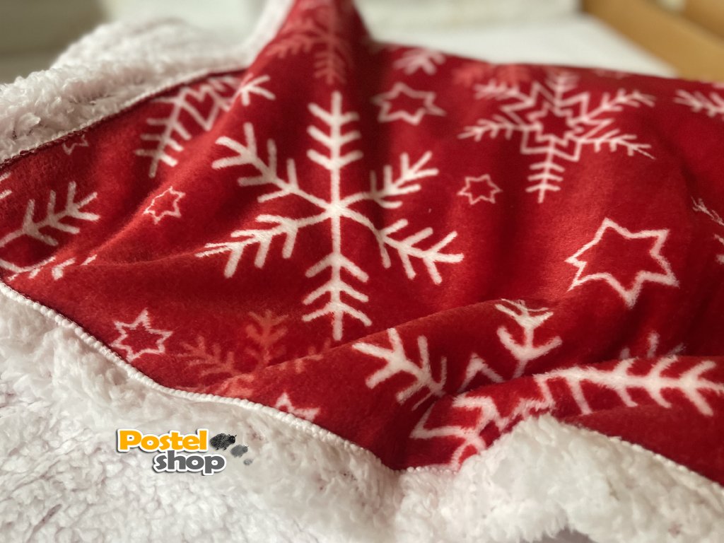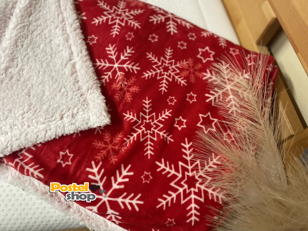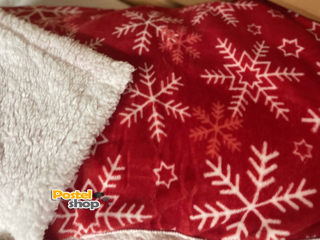 Mikroplyšová deka s beránkem v červené barvě a bílými vločkami je perfektním doplňkem pro zimní večery, kdy oceníte teplo a měkkost na dotek.