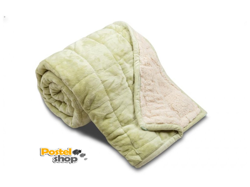 Deka mikroplyš s beránkem prošívaná pistáciová 150x200cm