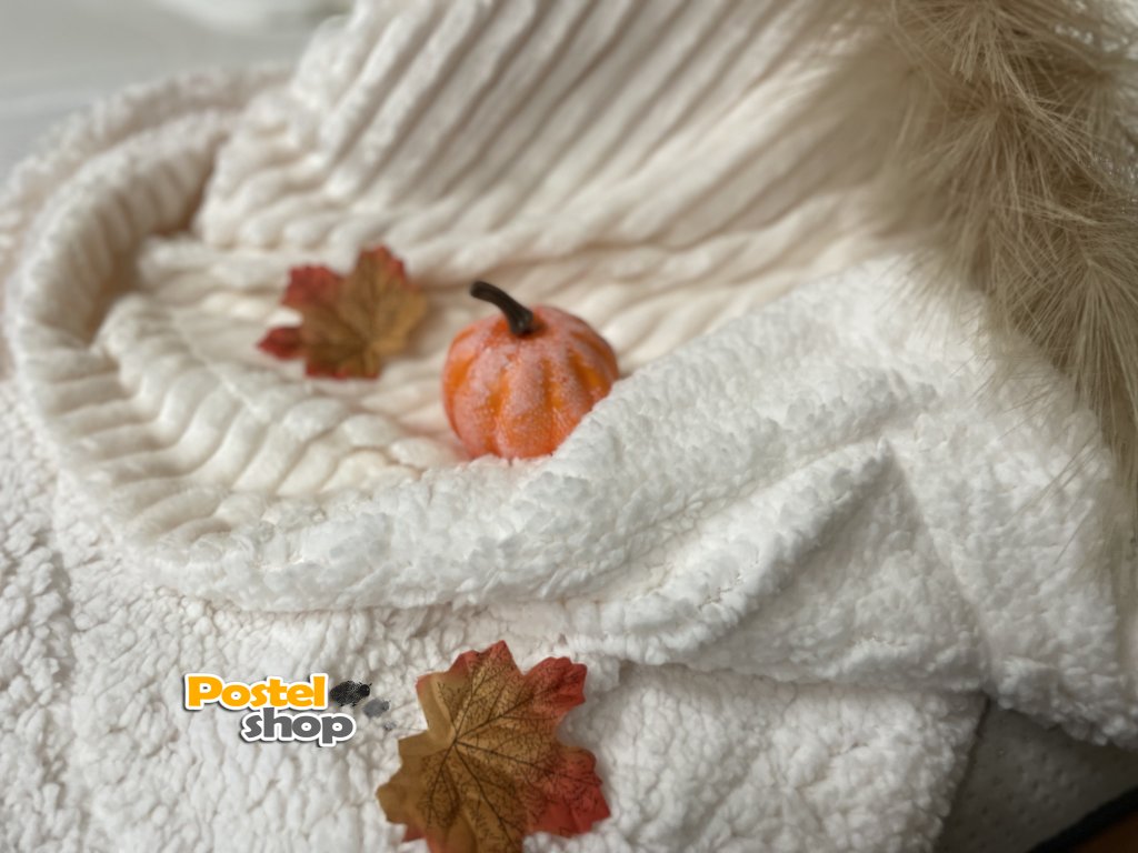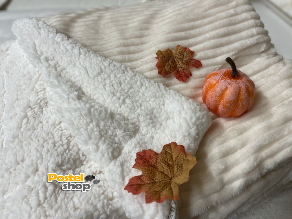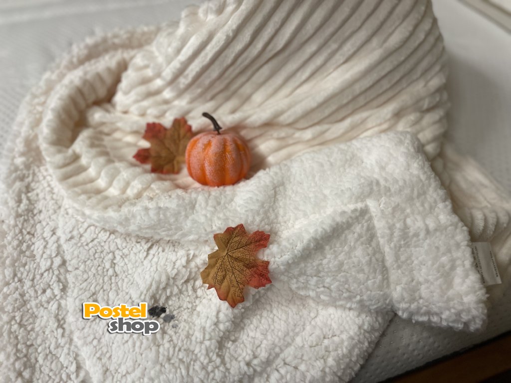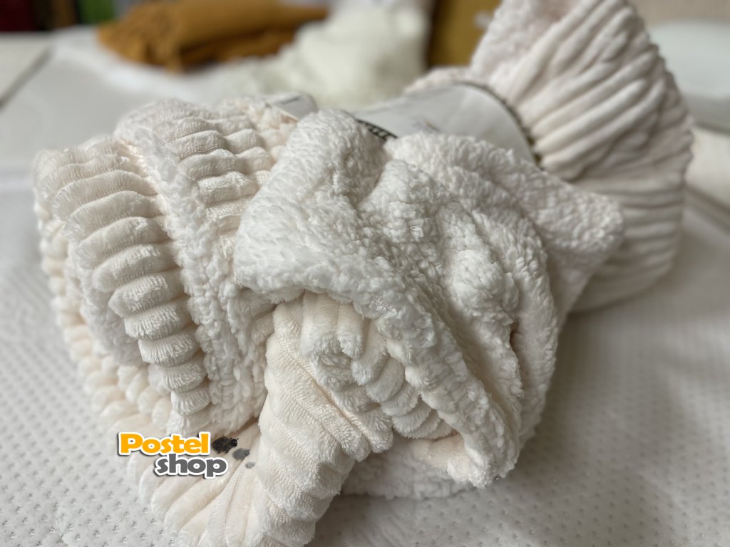 Deka mikrovlákno Entuzia Sherpa manžestr vroubkovaná s beránkem smetanová 160/220 cm