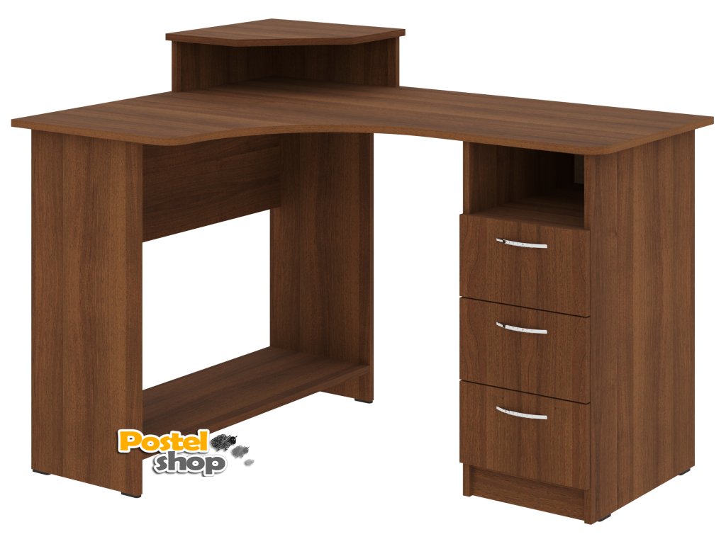 Rohový psací stůl KOMPAKT se zásuvkami je ideální volbou pro každou domácnost či kancelář, kde je kladen důraz na efektivitu a úsporu prostoru. Tento praktický stůl nabízí dostatek místa pro počítač, pracovní materiály i osobní věci. Je vybaven zásuvkami, které pomohou udržet vše potřebné po ruce a zároveň organizované. Elegantní design stolu, kombinující moderní a funkční prvky, se hodí do různých interiérů. Stůl je vyroben z kvalitních materiálů, které zajišťují jeho dlouhou životnost a odolnost.