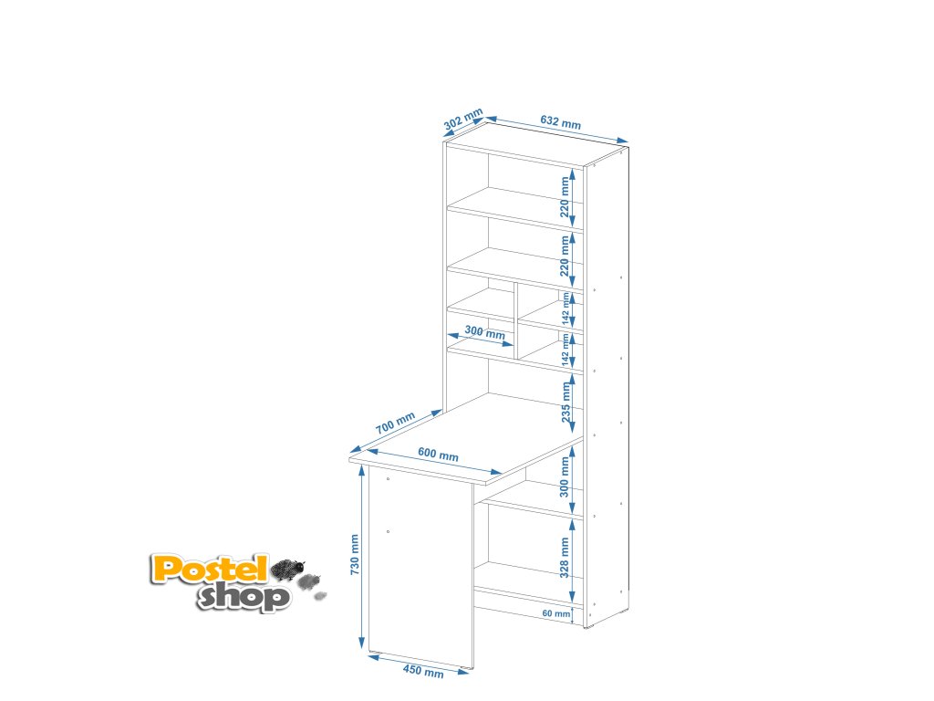 - Funkčnost a úspora místa: Kombinace pracovního stolu a regálu umožňuje maximálně využít prostor a udržet vše potřebné na dosah, aniž byste ztratili přehled.