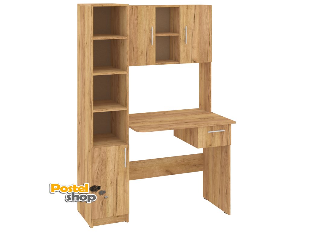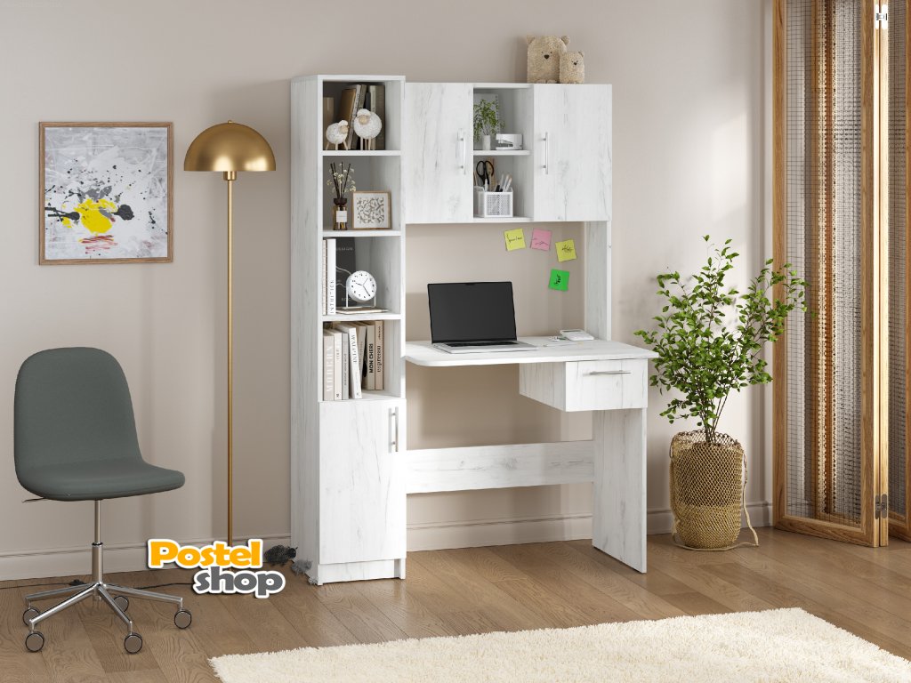 Přineste si domů dokonalý pracovní stůl, který kombinuje funkčnost, eleganci a dostatek úložného prostoru! Psací stůl Piligrim s praktickým nástavcem a bočním policovým regálem je ideálním řešením pro všechny, kdo potřebují efektivní pracovní prostor, aniž by obětovali styl.