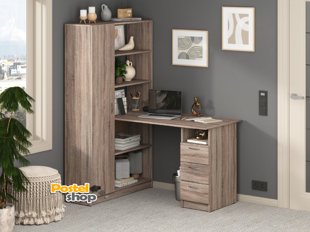 Psací stůl SPEKTR s skříní a policovým regálem – Funkcionalita a styl v jednom