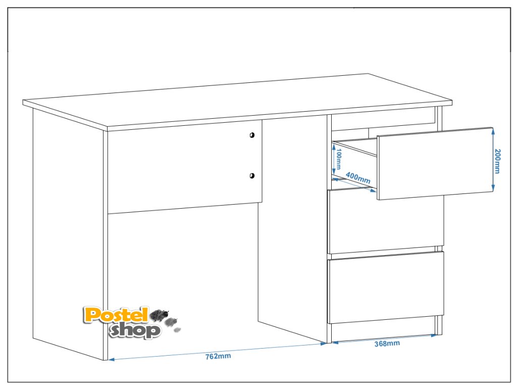 - Praktické zásuvky: Zásuvky umístěné na pravé straně poskytují skvélé místo pro uspořádání dokumentů, psacích potřeb a osobních věcí. Udržte svou pracovní plochu čistou a organizovanou.