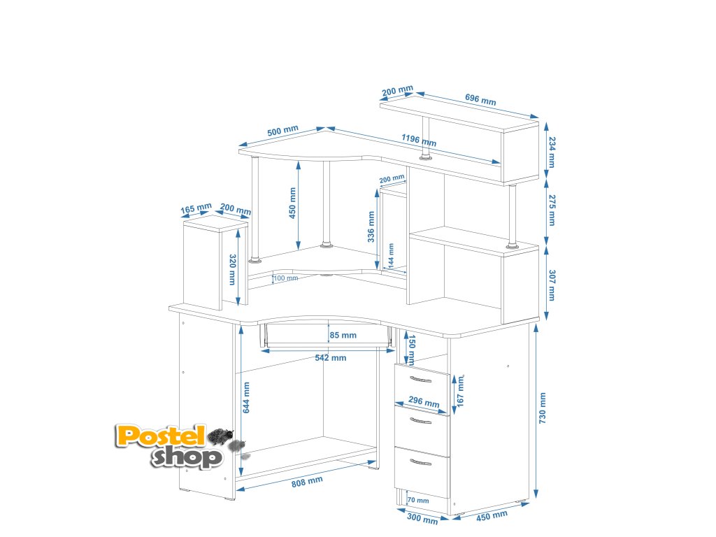 Rohový psací stůl Kompakt Plus je ideálním řešením pro každý moderní pracovní prostor. Tento funkční a prostorný stůl je navržen tak, aby šetřil místo, a přitom poskytoval dostatek prostoru pro všechny vaše pracovní potřeby. S elegantním designem a kvalitním zpracováním je tento psací stůl vhodný do kanceláře, pracovny nebo studentského pokoje.
