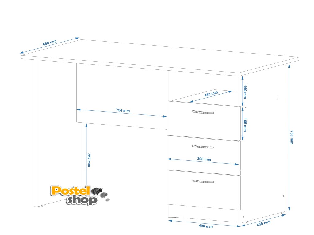 Tento elegantní a funkční psací stůl je ideálním řešením pro každý pracovní prostor. Vyrobený z kvalitního materiálu, nabízí dostatek místa pro pohodlné psaní, práci na počítači i organizaci pracovních pomůcek. Design stolu je moderní a nadčasový, což ho činí snadno kombinovatelným s různými interiérovými styly. Robustní konstrukce a kvalitní povrchová úprava zaručují dlouhou životnost a snadnou údržbu.