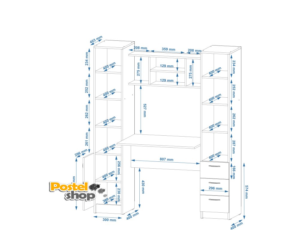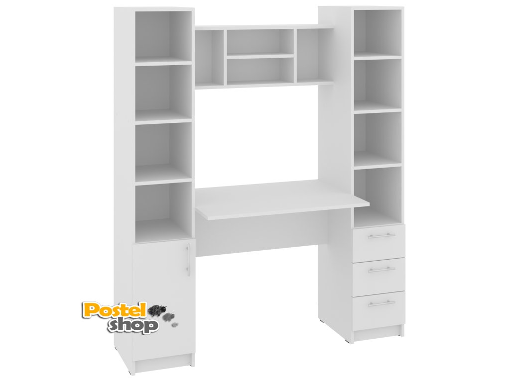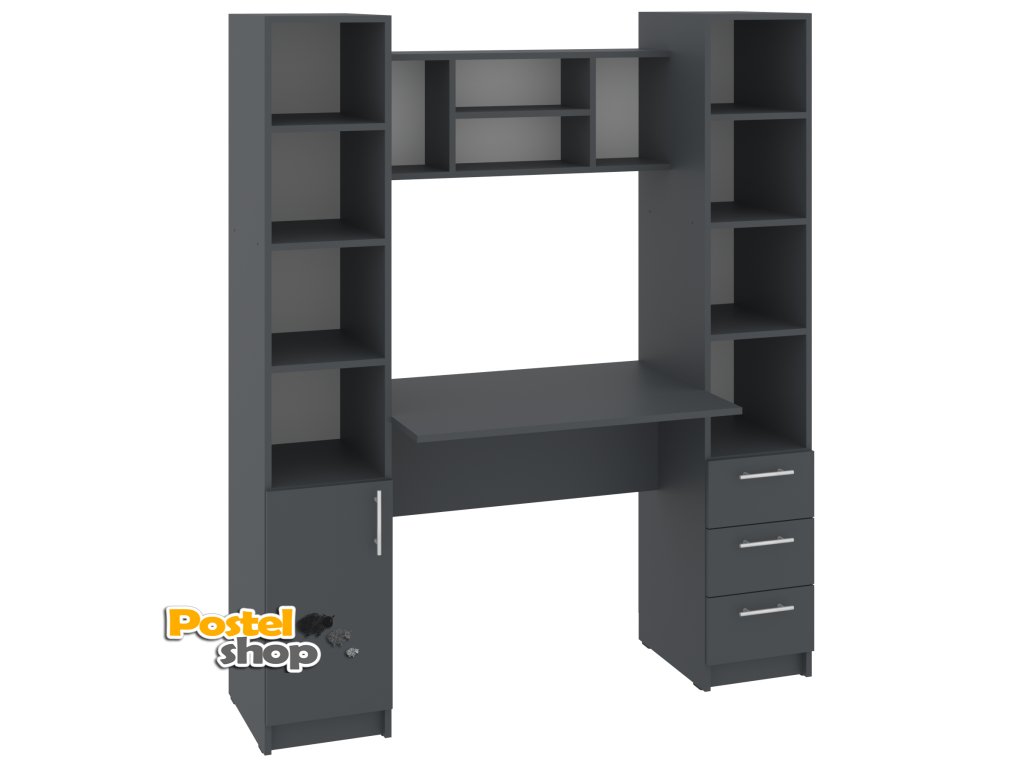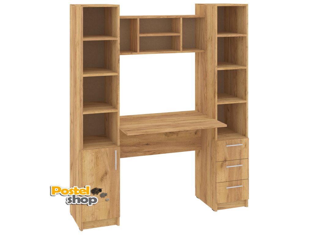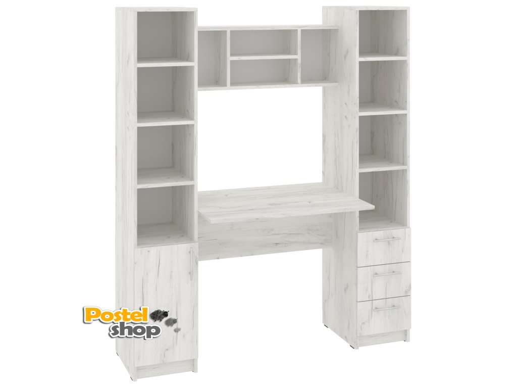 Psací stůl Grand s policovými regály po stranách je perfektní volbou pro každého, kdo hledá stylové a funkční pracovní místo. Tento moderní stůl nabízí dostatek prostoru pro vaši pracovní plochu a zároveň poskytuje praktické úložné možnosti díky vestavěným policovým regálům na obou stranách. Regály jsou ideální pro uskladnění knih, dokumentů, kancelářských potřeb a dalších drobností, které budete mít vždy po ruce.