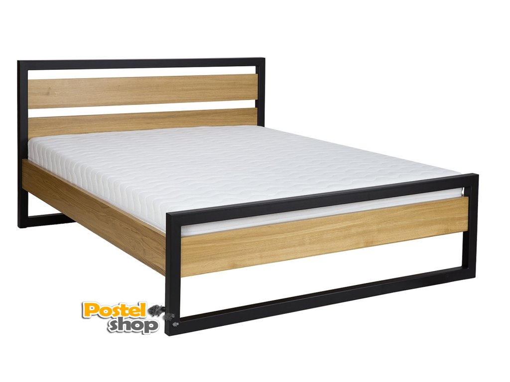 Kvalitní dřevěná postel je vyrobena z dubového masivu v kombinaci s masivní kovovou konstrukcí ve velmi moderním designu.