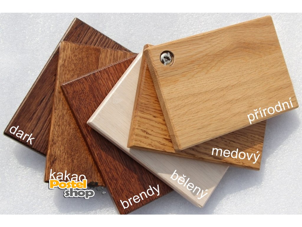 V základní ceně má nábytek přírodní barvu dubového dřeva, za příplatek + 10% si můžete zvolit barevné moření