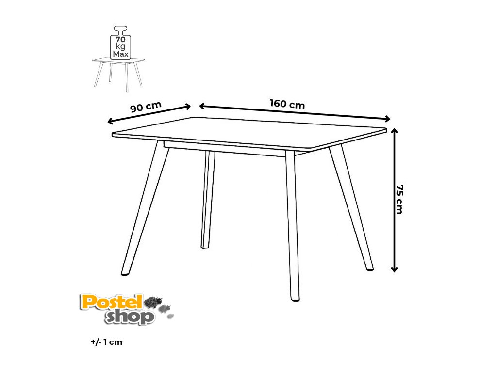 Svým nadčasovým designem a praktickými rozměry 160x90x75 cm se tento stůl hodí do různých stylů jídelen i kuchyní.