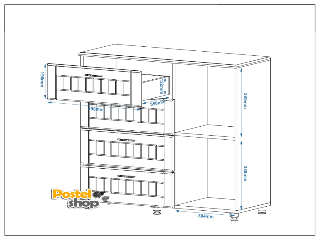 - Praktický úložný prostor – 4 zásuvky a skříňka pro pohodlné uskladnění.