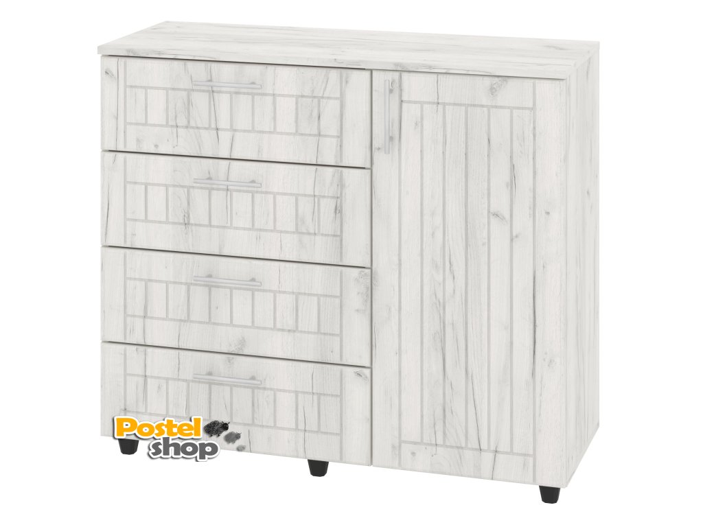 Komoda K-4+1 MDF je moderní a funkční kousek nábytku, který se hodí do každého interiéru. S elegantním designem a kvalitní MDF konstrukcí nabízí dostatek úložného prostoru v podobě čtyř zásuvek a skříňky. Díky různým barevným variantám, jako je bílá, dub sonoma, wenge a další, snadno zapadne do vaší domácnosti. Komoda je ideální pro ukládání oblečení, dokumentů nebo jiných osobních věcí.