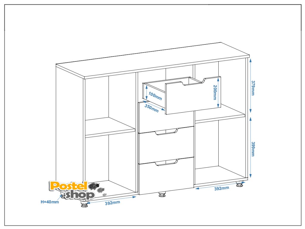 - Snadná montáž: Komoda je navržena pro jednoduché a rychlé sestavení.