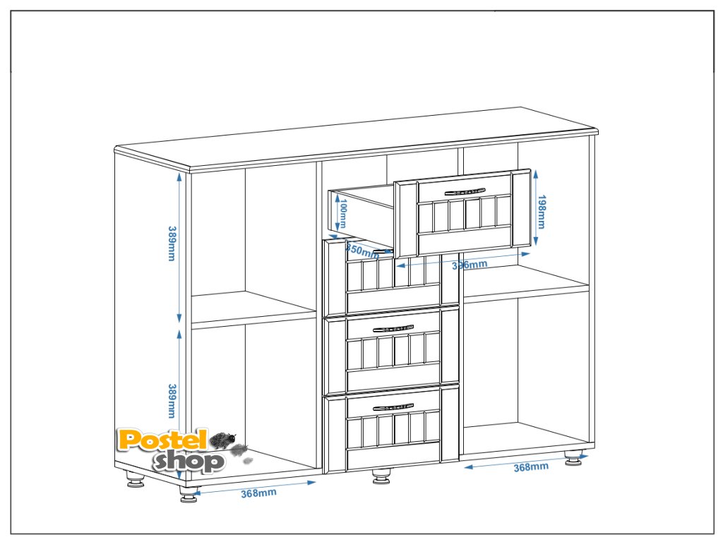 - Prostorný úložný prostor: Čtyři zásuvky a dvě skříňky s dvířky poskytují dostatek místa pro uložení různých předmětů.