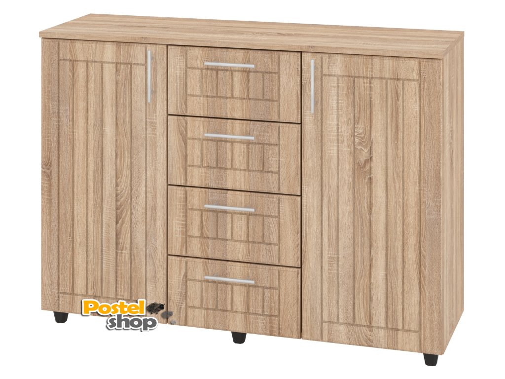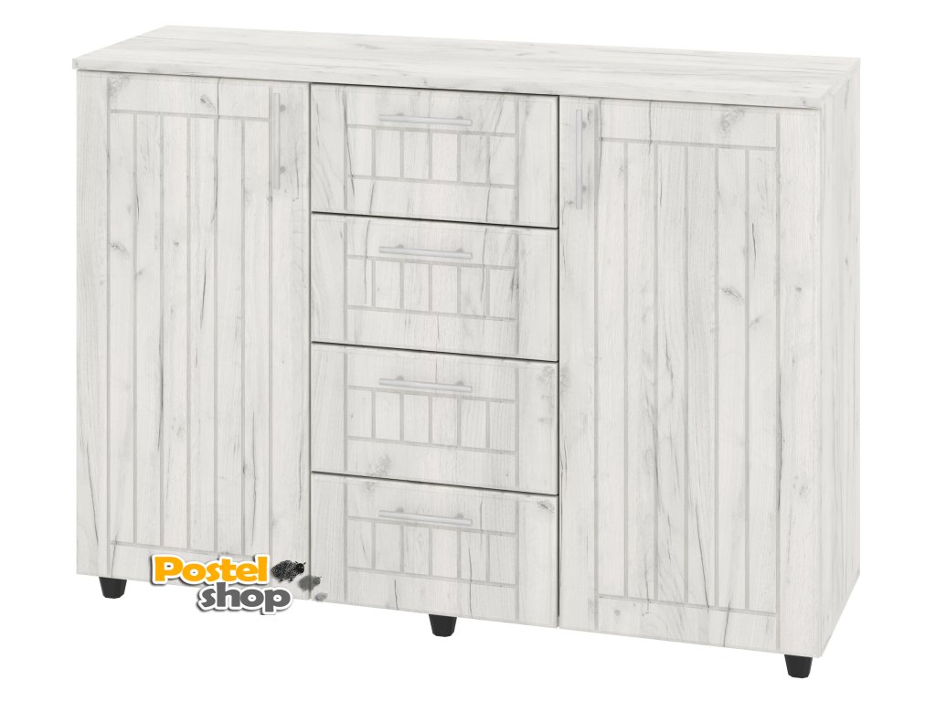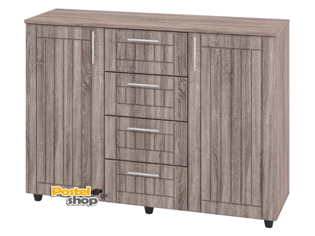 Komoda K-4+2 MDF je elegantní a praktický kus nábytku, který se hodí do každého interiéru. S moderním designem a kvalitní MDF konstrukcí nabízí dostatek úložného prostoru v podobě čtyř zásuvek a dvou skříněk s dvířky. Dostupná je v několika atraktivních barevných provedeních, jako je bílá, dub sonoma, wenge, dub kraft, lískový ořech a dub truffle. Celkové rozměry komody jsou: