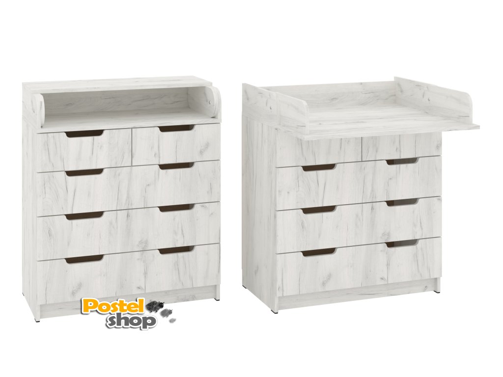 - 2v1 Design – Tato komoda slouží jako přebalovací pult a po složení desky se snadno přemění na prostornou zásuvkovou komodu s nikou, čímž ušetří místo a přizpůsobí se vašim potřebám i po přebalovacím období.