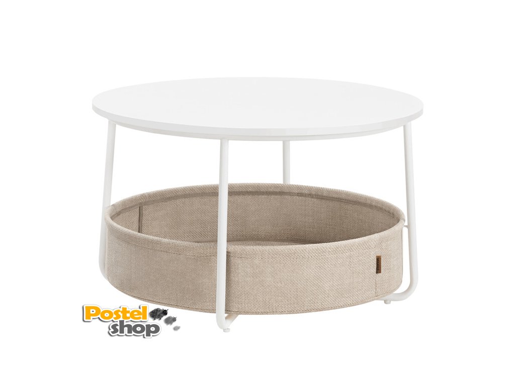 Konferenční stolek AFK-E1144 WT v moderním kulatém tvaru o průměru 75 cm a výšce 45 cm nabízí praktický úložný prostor díky textilnímu koši umístěnému pod deskou.