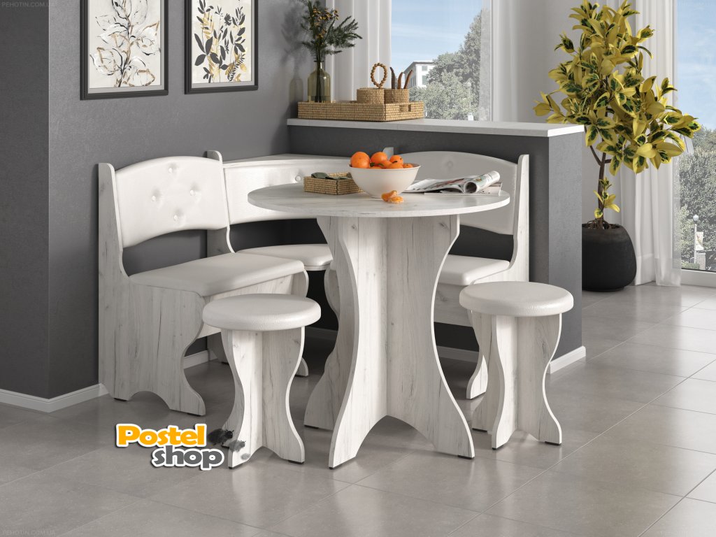 Materiál, ze kterého je lavice vyrobena, je odolný a snadno se udržuje, což prodlužuje její životnost. Jednoduchý, ale moderní design s čistými liniemi a kvalitním čalouněním dodá vaší jídelně nebo kuchyni sofistikovaný a útulný vzhled. Rohová lavice BOJARIN je ideální volbou pro ty, kdo chtějí skloubit funkčnost s estetikou.