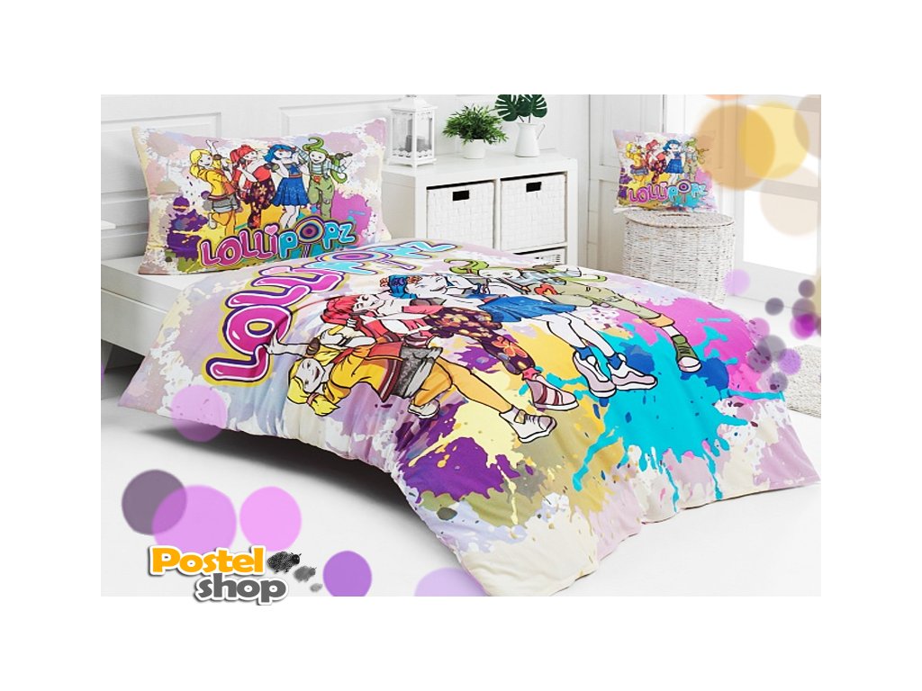 Z bavlněného povlečení s motivem české hudebně-taneční skupiny Lollipopz budou vaše děti nadšené! Barevný vzor září energií, stejně jako veselá tvorba této oblíbené dívčí čtveřice.