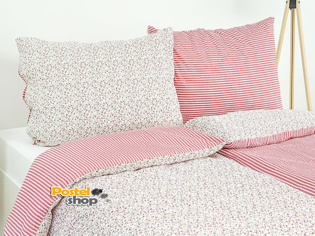 Ložní povlečení bavlna kvítek pruh červený oboustranné