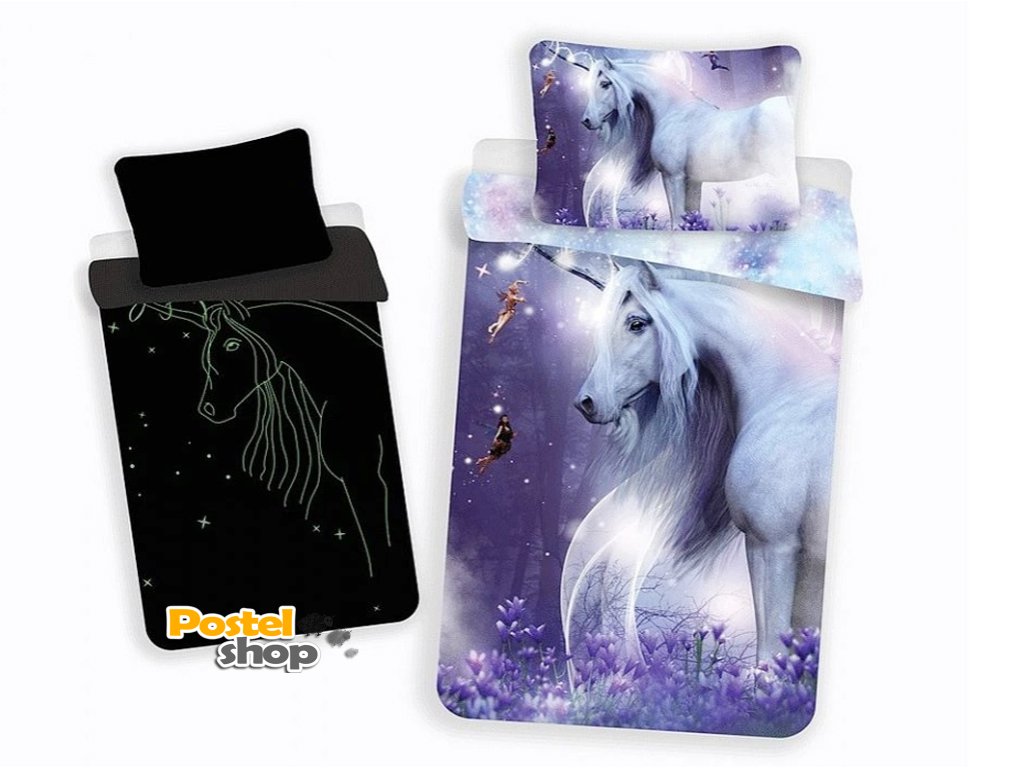 Ložní povlečení bavlna dětské Jednorožerec svítící 140x200cm, 70x90cm