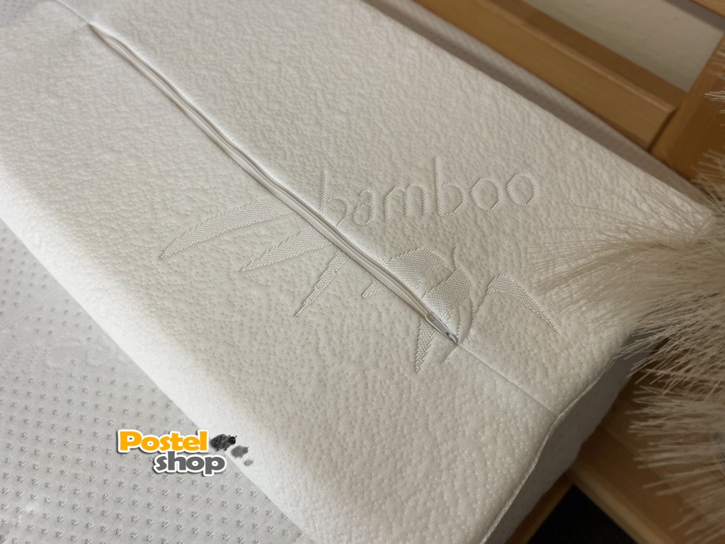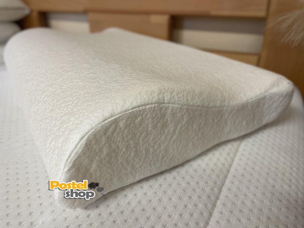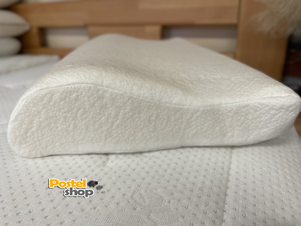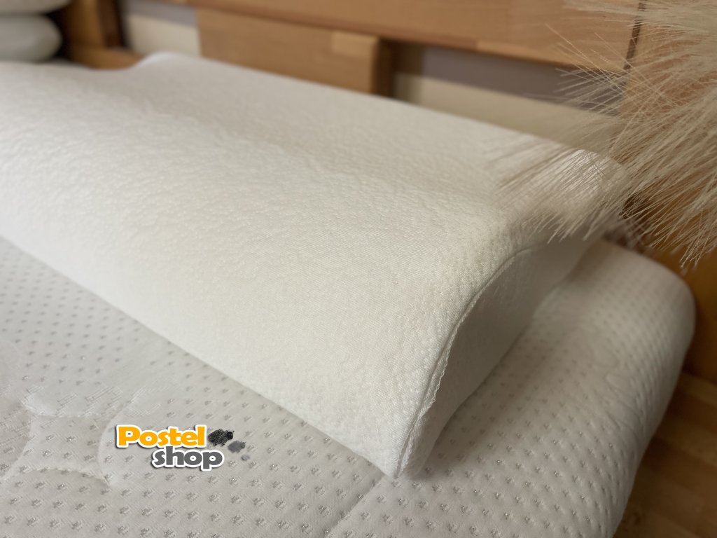 Velmi přizpůsobivý polštář z paměťové (líné) pěny o hustotě 50 kg/m3. pro uvolnění krční páteře a pohodlné spaní