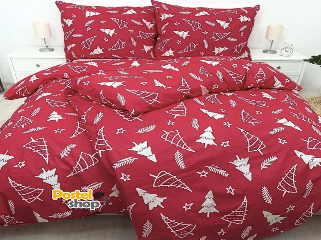 Povlečení bavlna deluxe vánoční strom červené 140x200cm +70x90cm