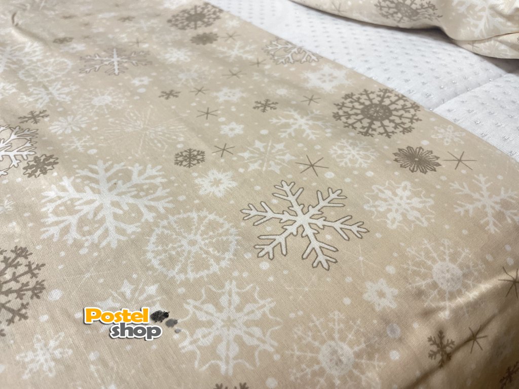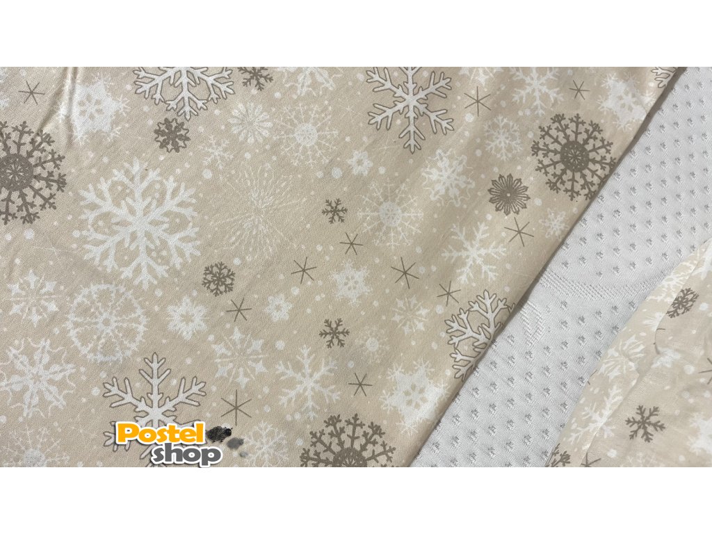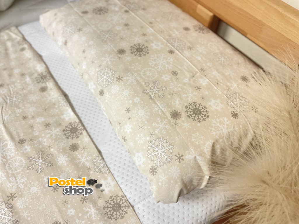 Povlečení bavlna Kvalitex vánoční vločky béžové 140x200cm +70x90cm / poslední 1ks