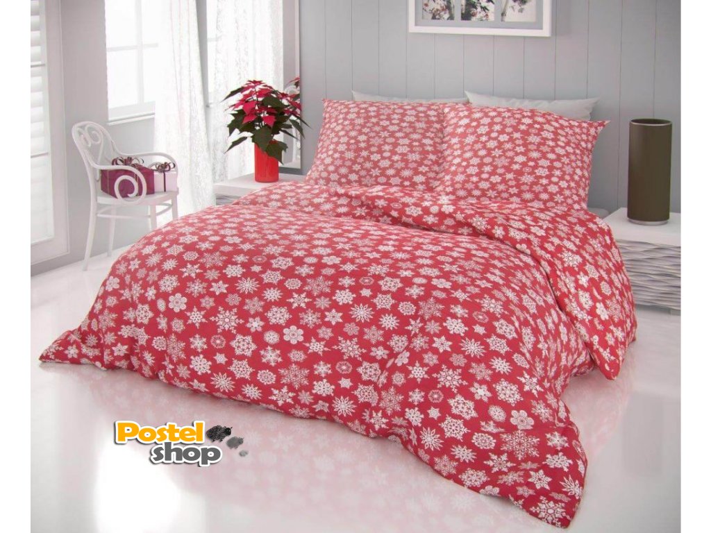 Povlečení bavlna Kvalitex vánoční vločky červené
