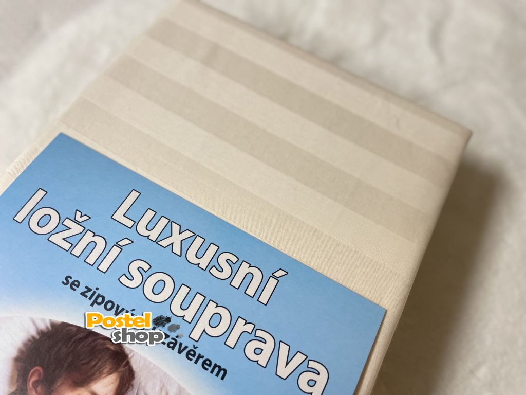 Povlečení bavlněné atlas grádl s proužkem smetanové