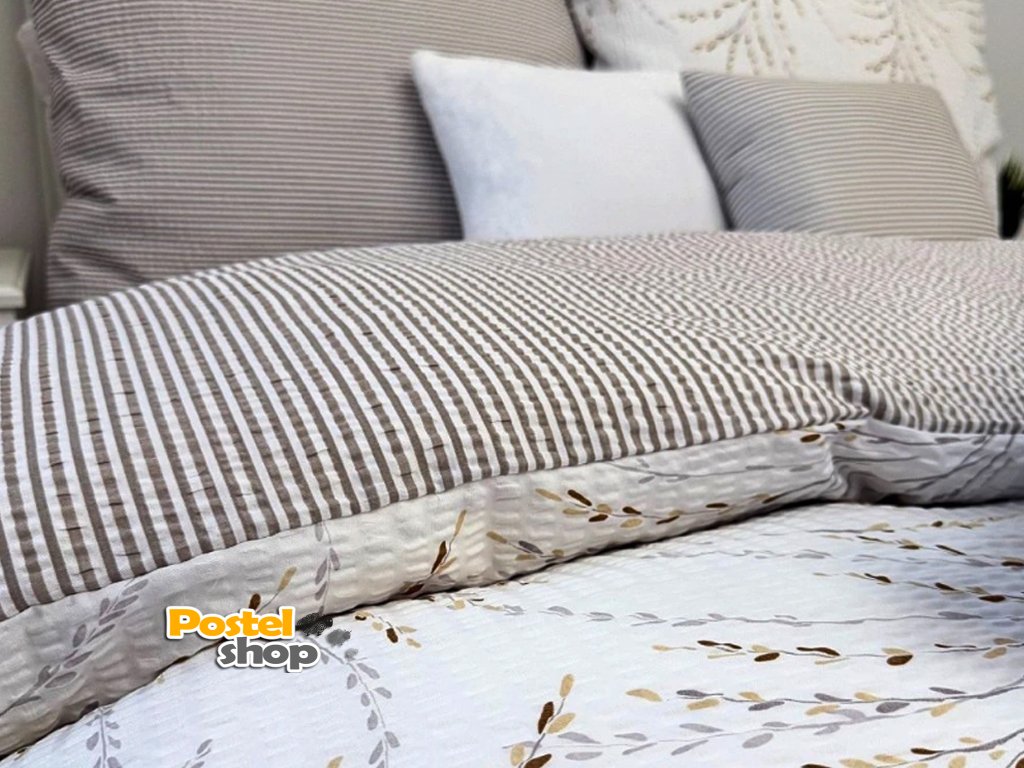Oboustranné provedení umožňuje proměnit vzhled ložnice během chvilky. Ušito ze 100% bavlněného krepu, který je příjemný i praktický.