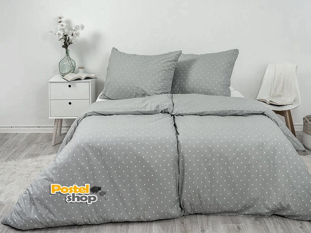 Povlečení krep puntík šedý