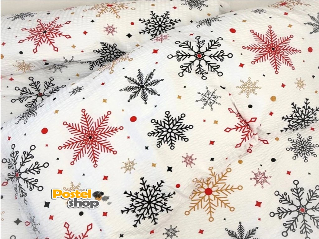 Vločky rozeseté na bílém podkladu jako hvězdy na večerní obloze přináší do ložnice tradiční slavnostní atmosféru. Krepové povlečení vás bude provázet nejen adventním a vánočním časem, ale klidně i celou zimou. Ušito ze 100% bavlněného krepu, který je příjemný i praktický.
