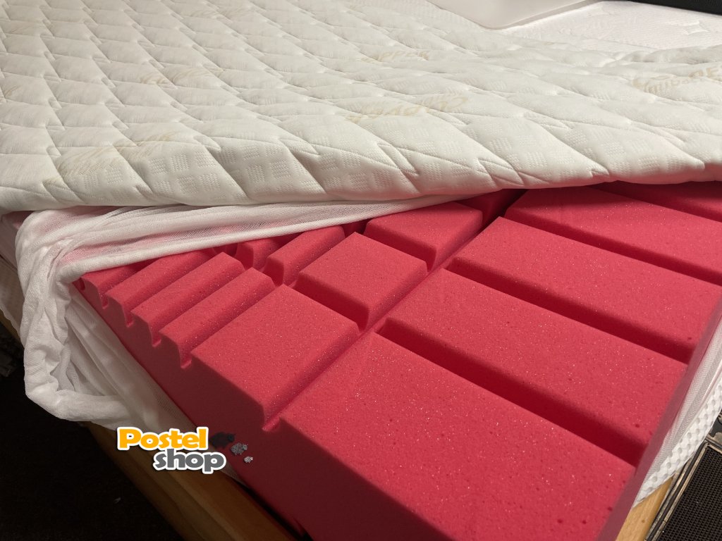 Matrace je vyrobena ze studené pěny s objemovou hmotností 50 kg/m3 s nižším odporem stlačené, což zaručuje nekompromisní oporu pro tělo a je ideální pro milovníky středně tuhé matrace . Příčný a podélný prořez (antidekubitní)