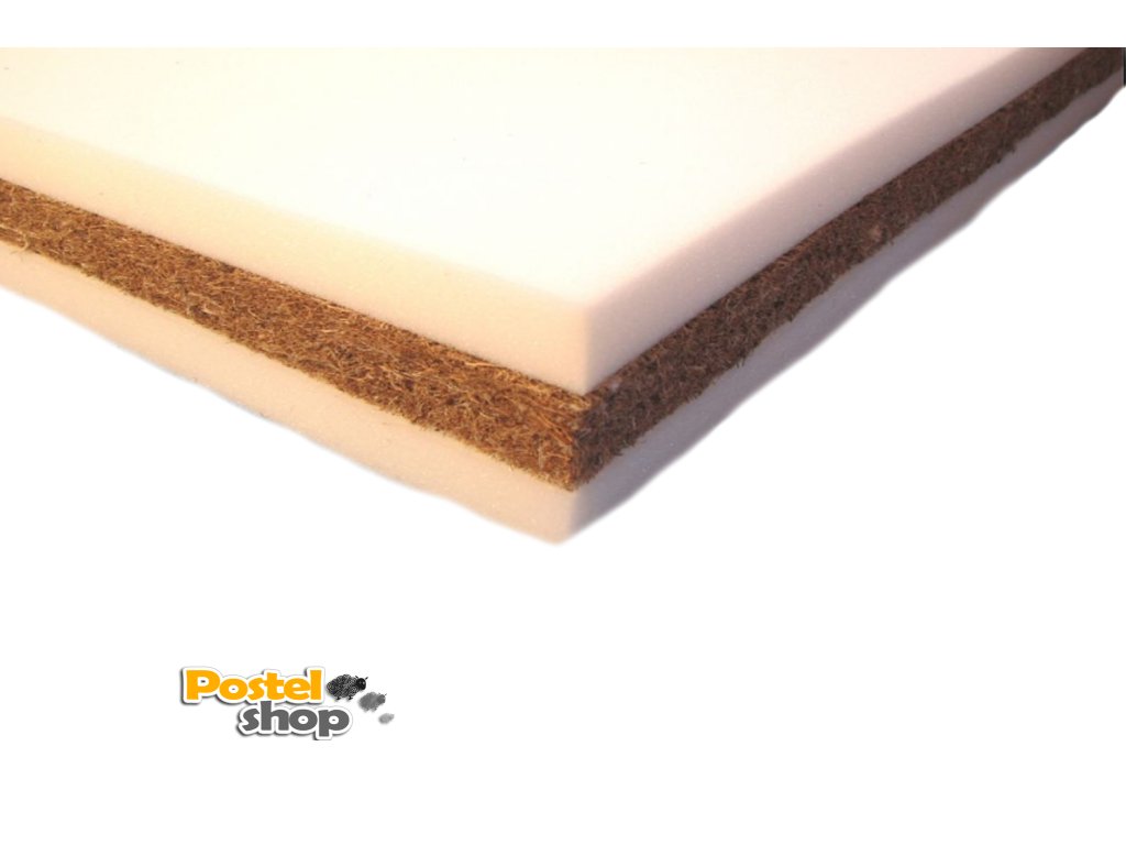 Jádro matrace je tvořeno kokosovou deskou o síle 3 cm. Z obou stran je kokosová deska obalena deskami z polyuretanové pěny o síle 2,2cm.