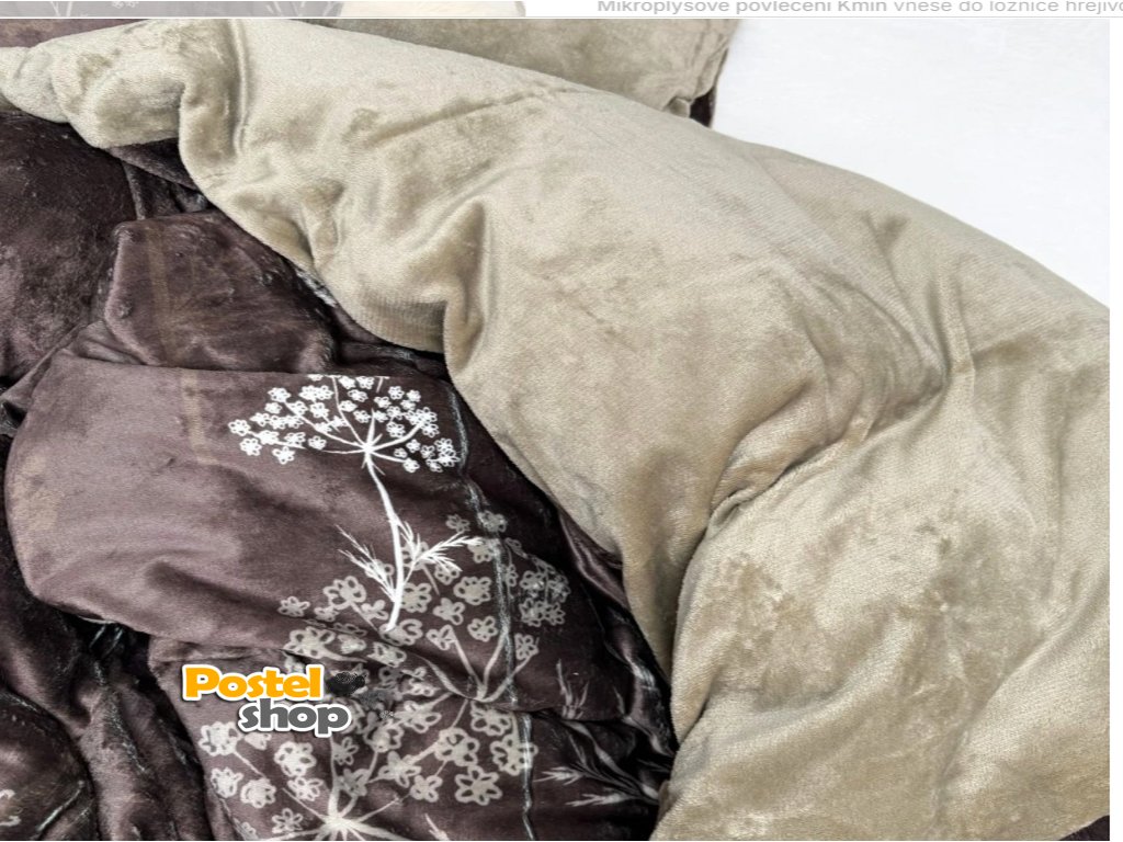 Mikroplyšové povlečení Kmín vnese do ložnice hřejivou atmosféru nejen díky materiálu, ale i svému barevnému provedení. Jemné kmínové větvičky v různých odstínech hnědé připomínají teplo domova a potěší všechny milovníky přírodních motivů. Hebký mikroplyš si vás získá svou neodolatelnou měkkostí a dopřeje pohodlný spánek po celou noc.