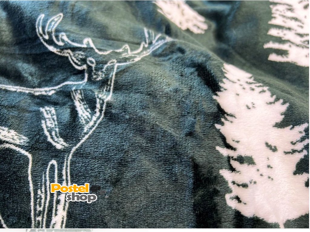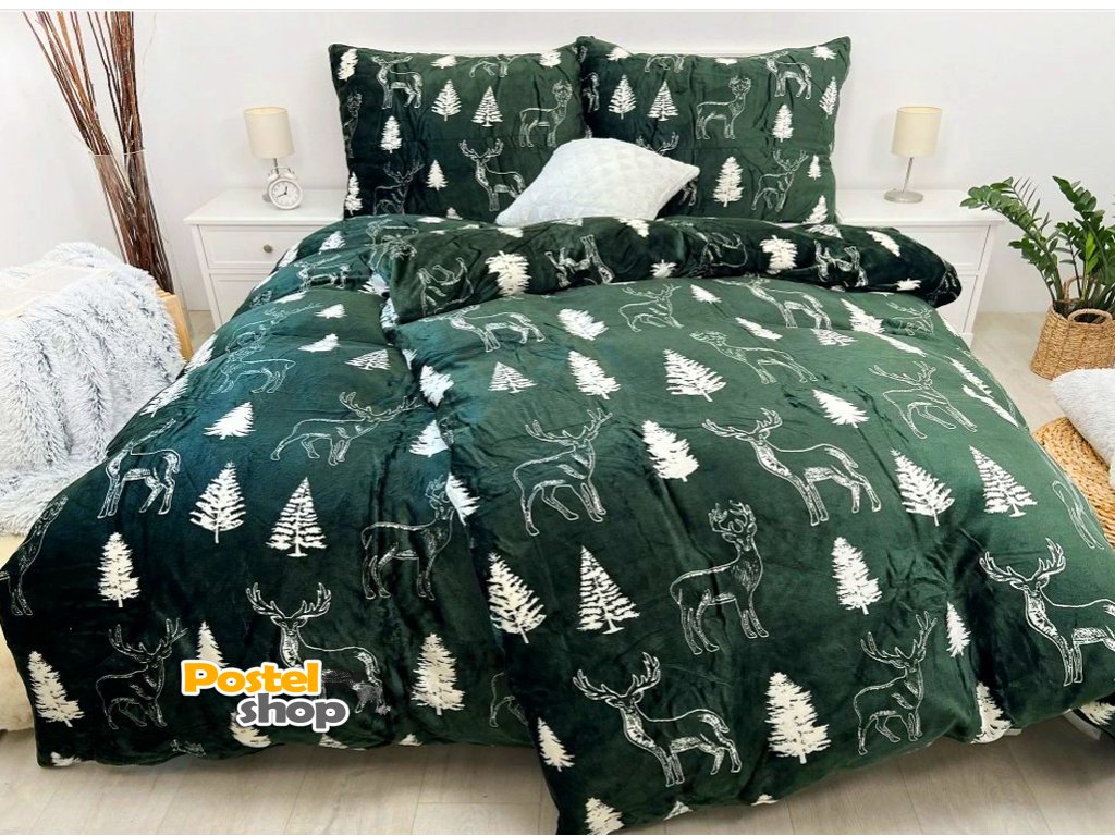 Povlečení mikroplyš vánoční zelené jelen 140x200cm, 70x90cm