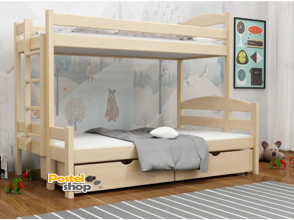 Patrová postel s rozšířeným spodním lůžkem se zásuvkami typ 2- žebřík ze strany -stabilní