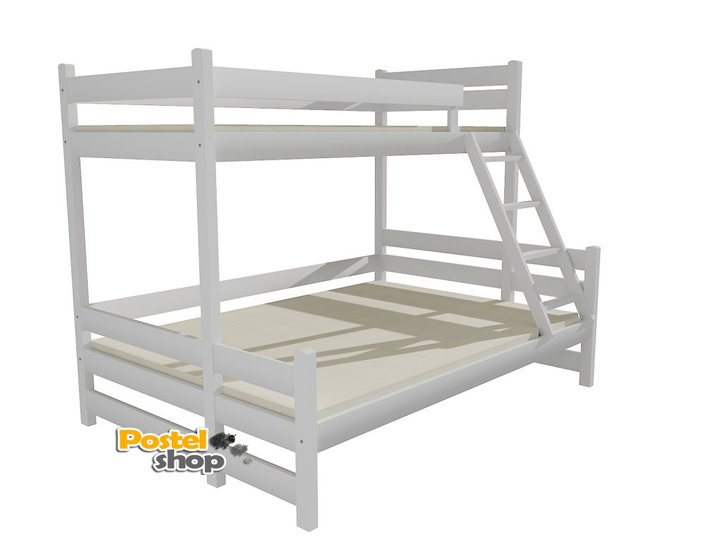 Patrová postel s rozšířeným spodním lůžkem se zásuvkami - žebřík ze strany -stabilní