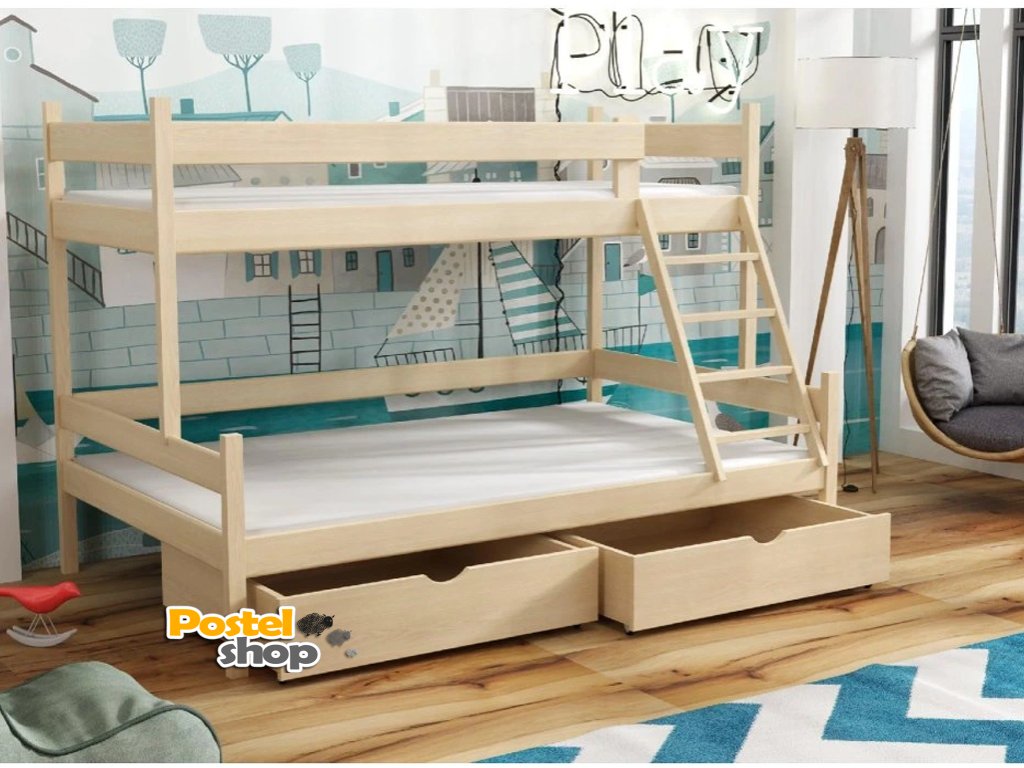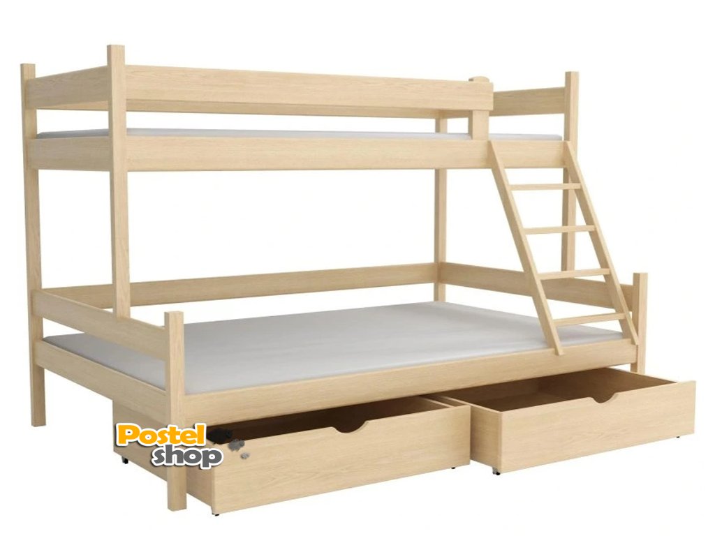 Patrová postel s rozšířeným spodním lůžkem typ 2 se zásuvkami - žebřík z čela