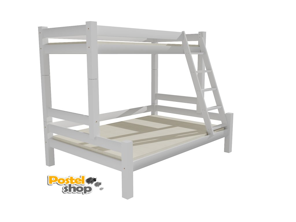 Patrová postel s rozšířeným spodním lůžkem - žebřík z čela - stabilní
