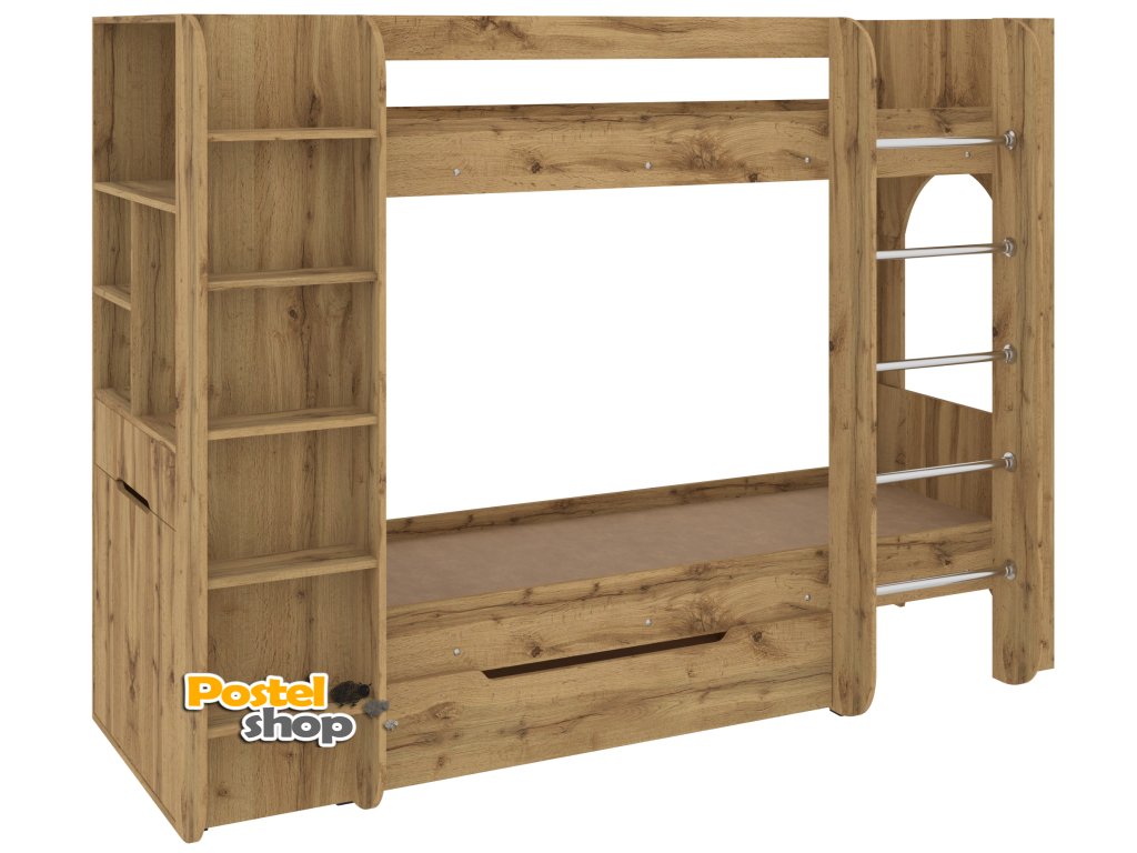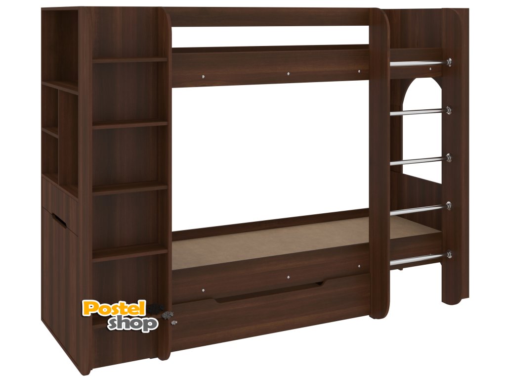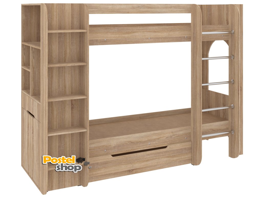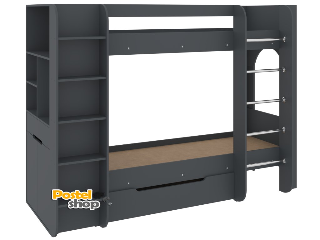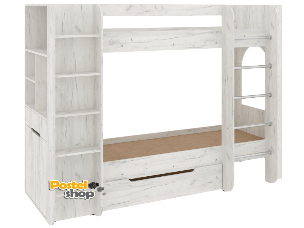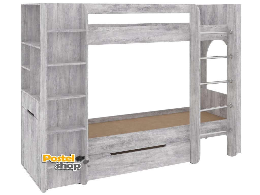 Patrová postel Duo - 4, 70 x 190 cm, s regály a zásuvkou